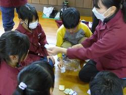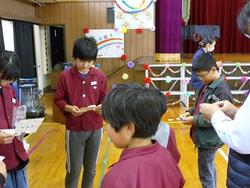 ダンスの後に、6年生手作りお守りが1~5年生に手渡しされました。