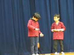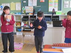 口吉川町の老人クラブの皆様に昔遊びを教えていただいたことや、音楽の時間に学んだ合奏を発表させていただきました。