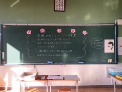 教室の黒板をのぞくと、担任からのメッセージがあります。