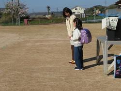 「始業式まで、運動場で待ちましょう。」と、学年終わりに教えてもらった子どもたちは、登校してくると、すぐに運動場に整列し始めました。