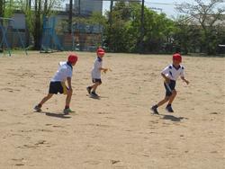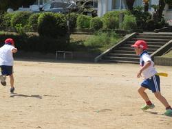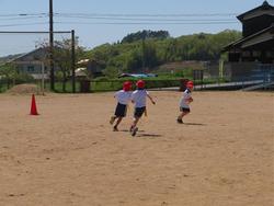 1・2年生は、広い運動場を思いっきり使って体を動かしています。