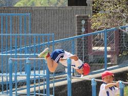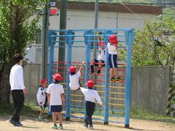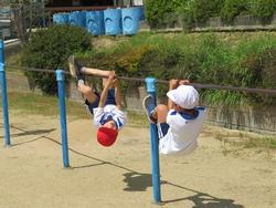 逆上がりを軽々やったり、後ろまわりを何度もやったりと、2年生は巧みな技を見せました。