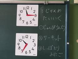 運動するまでに、黒板に今日の体育の始まりや終わりの時刻、学習予定を確認して運動場に出ました。