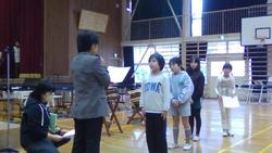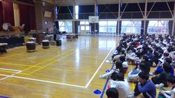 体育館には既に13日、14日実施の音楽会に向けて楽器が並んでいるため、