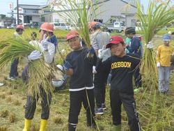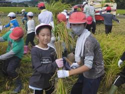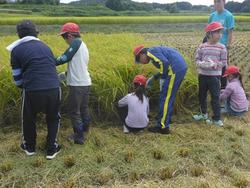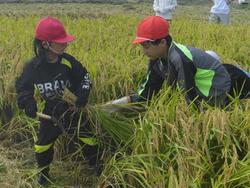 額に汗をかきながら、稲を刈り取る三木小っ子の姿は素敵です