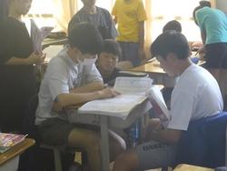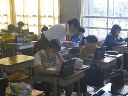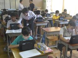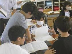 タブレットで意見を書き込み、みんなで2つの場面を確認します