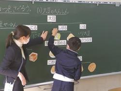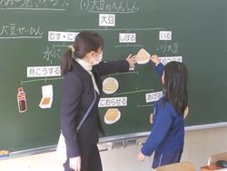 給食の献立の中で、大豆から作られている食材を探し、大豆の変化を図にします