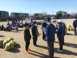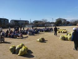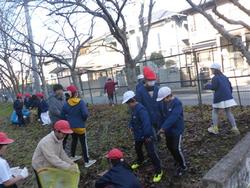 班毎6年生を中心に落ち葉を拾い、学校を美しくします