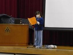 「3学期がんばりたいこと」を3年生、6年生代表が発表します