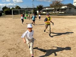 秋の青空の下、児童、教師の笑顔がいっぱいあふれたミニ運動会でした。