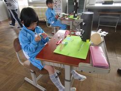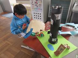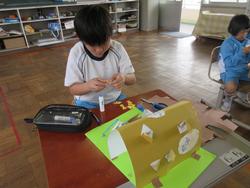 カッターで窓を切り開いた色画用紙の建物。その窓の先に広がる、自分だけの自由な世界を表現する創作活動に熱中しています。