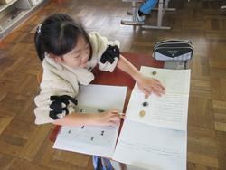 説明文「すがたをかえる大豆」では、筆者の分かりやすく説明する工夫を見つけました。そして、見つけた工夫を使って、自分が調べた食べ物について説明する文章を書いています。教科書の文章に戻り確認しながら書いたり、友だちに相談したりしながら完成を目指して頑張っています。