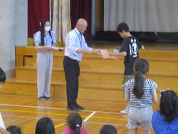 科学作品展では多くの人が佳作を受賞しています。銀賞受賞者に代表して賞状と盾を受け取ってもらいました。