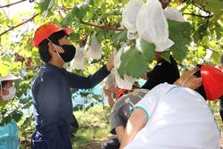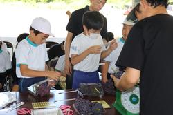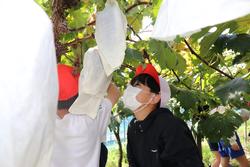 ブドウ栽培についての説明を受けた後、早速ブドウ園にて収穫体験を行いました。