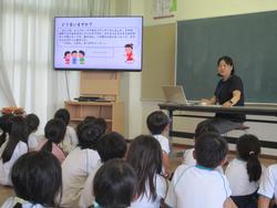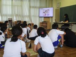 電子黒板を使ってお話をしていただき、その後みんなで話し合いを進めました。