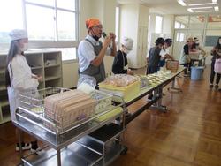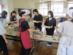 その後、給食試食会を行いました。保護者の方々には手早く準備をして頂きました。