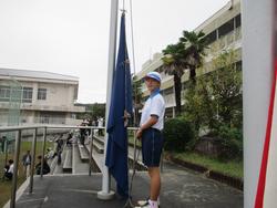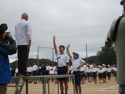 国旗、市旗、校旗の掲揚、小学校長あいさつ、児童代表あいさつ、誓いの言葉と進んでいきました。