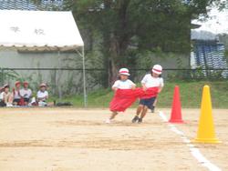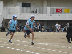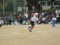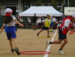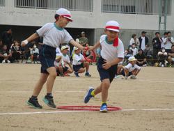 低学年のリレーはリングバトンを使った折り返しリレーです。