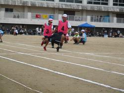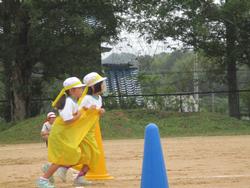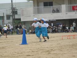 途中ミニハードルがあったり、コーンの周りを1周したりと走りにくい仕掛けがありましたが、ふたりで協力して頑張ることができました。