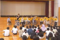 3,4年生は学習の一環として楽器を目の前で見せてもらったり、演奏してもらったりしました。