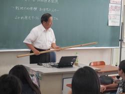 また、出征旗や竹やりなど持参して頂き、見せて頂きました。子どもたちも実物を見て、とても驚いていました。