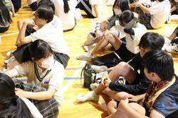 体験授業のあとは、スマートフォンの安全な活用について中学生と一緒に学びました。