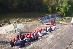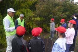 花植えが終わった後、黒滝の前で学校運営協議会の地域活動推進員さんより黒滝に関するクイズを出していただきました。