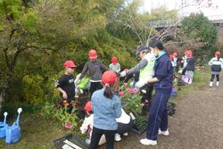 11月10日(月)2年生が吉川の観光名所「黒滝」の花植え活動に参加しました。