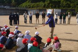 1年生は3グループ、2年生は4グループに分かれて、クラブの握り方や打ち方を丁寧に教えてもらいました。