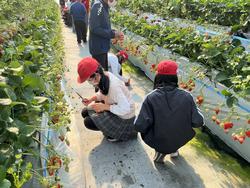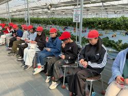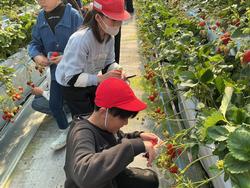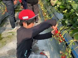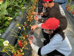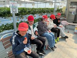 イチゴ栽培についてお話を聞いた後、収穫体験を行いました。
