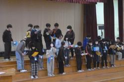 学年からの出し物のあとは、なかよし班(縦割り班)からメッセージカードが渡されました。