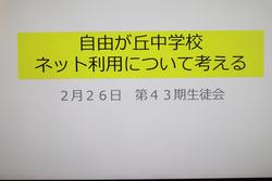 市内小中学生のネット利用状況や本校の取り組みを生徒会役員が報告しました。