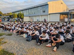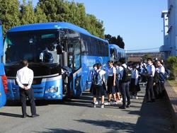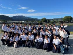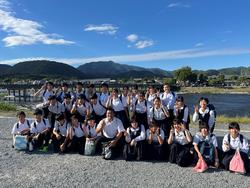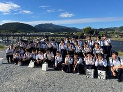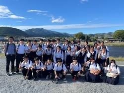 秋晴れのもと、2年生は京都校外学習に元気よく出発しました。
