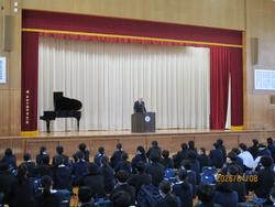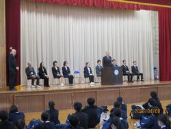10名の先生方が着任されました。新2年生、新3年生が抱負を話してくれました。