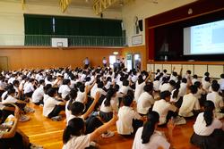 クイズや意見発表を交えた説明の中で、三木市の児童生徒は、全国と比べて「ネット依存」の傾向が