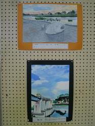 細川町の町民文化祭において、三木中学校の美術作品が展示されました。