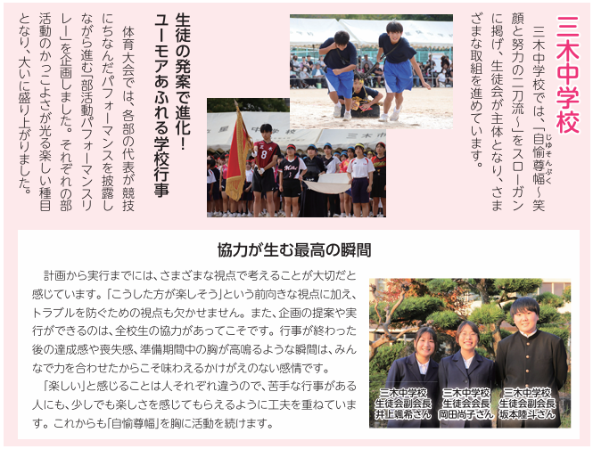生徒会が曼荼羅チャートなどを用いて、主体的に進めている生徒会活動が、広報みきで紹介されました。