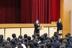 第80期生徒会の取組がスタートし、各委員会からの報告とスローガンの発表がありました。