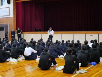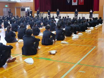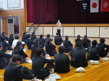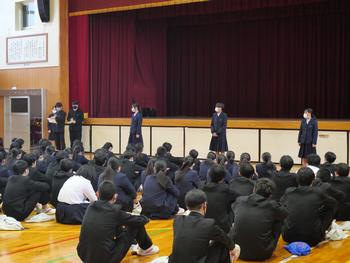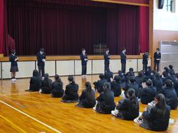 今回1,2年生は、学年末テストに向けての決意を、3年生は、私立(推薦)入試を終えての思いなどを発表しました。