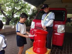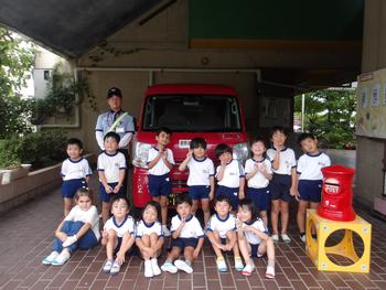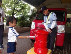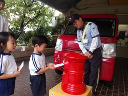 11日に、幼稚園に真っ赤な車の郵便屋さんが来てくださいました。