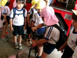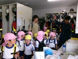 今日はみんなが大好き・憧れの消防署へ。職員の方が働いている所を見せていただきました。