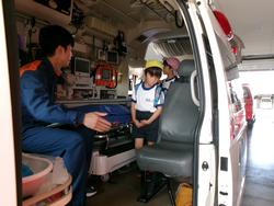 もう一つ、みんなの命を守る車、救急車の中や救助の人を運ぶ移動式ベッドも見せていただきました。