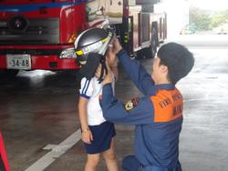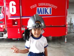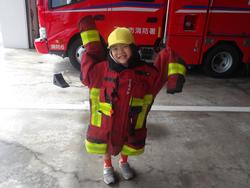 最後は特別に・・・と、実際につかっているヘルメットと消防服を着せていただきましたよ。