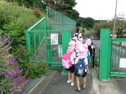 行先は…そうです(^^)もも組のお友だちが就学する「自由が丘東小学校」この日も業間タイムに到着♪