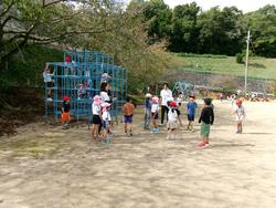 思い思いのお気に入りの遊具で遊んでいると、早速1年生が「一緒に増えオニしようよ♪」と誘いに来てくれました。