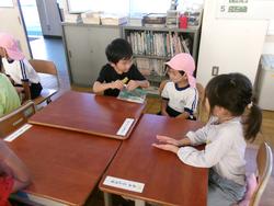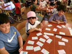 どの班の1年生も、「次が順番だよ。」「あの辺にあったかも!」と幼稚園の子どもたちが楽しくカードゲームに親しめるよう声掛けしてくれて!その優しさに子どもたちもいつの間にか笑顔いっぱいになりました。