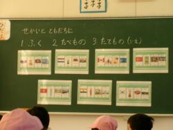 生活科の一つ、色々な「せかいとともだちに」と言う単元でした。班の中に一緒に入れてもらった子どもたち。