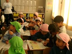 1-1の教室に行ってきました。(志染保育所のお友だちと一緒に)もも組