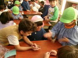 1-1のお兄さん・お姉さんが生活科の時間を使って「どんぐりゴマ」の作り方を教えてくれました。
