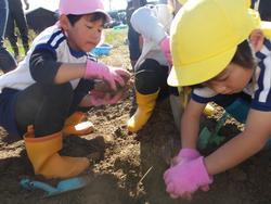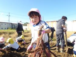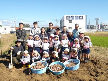 地域の会社の方が子どもたちの為にお芋畑を提供くださいました。初めてのお芋ほり、丁寧に教えていただいて嬉しいね!